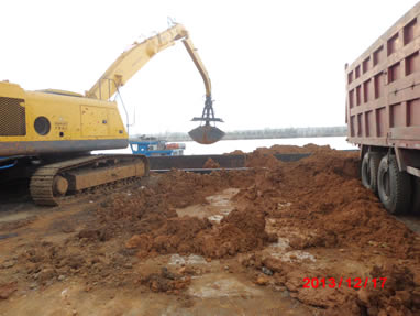 在江蘇某碼頭貨場,八達重工為其專門設計了抓斗退料裝置,解決了該碼頭大量運輸?shù)逆囃烈蛘承蕴蟾街谧ザ飞?,不易掉落而影響裝卸速度的問題,使鎳土卸船效率較老設備提高了好幾倍,贏得了客戶贊譽。