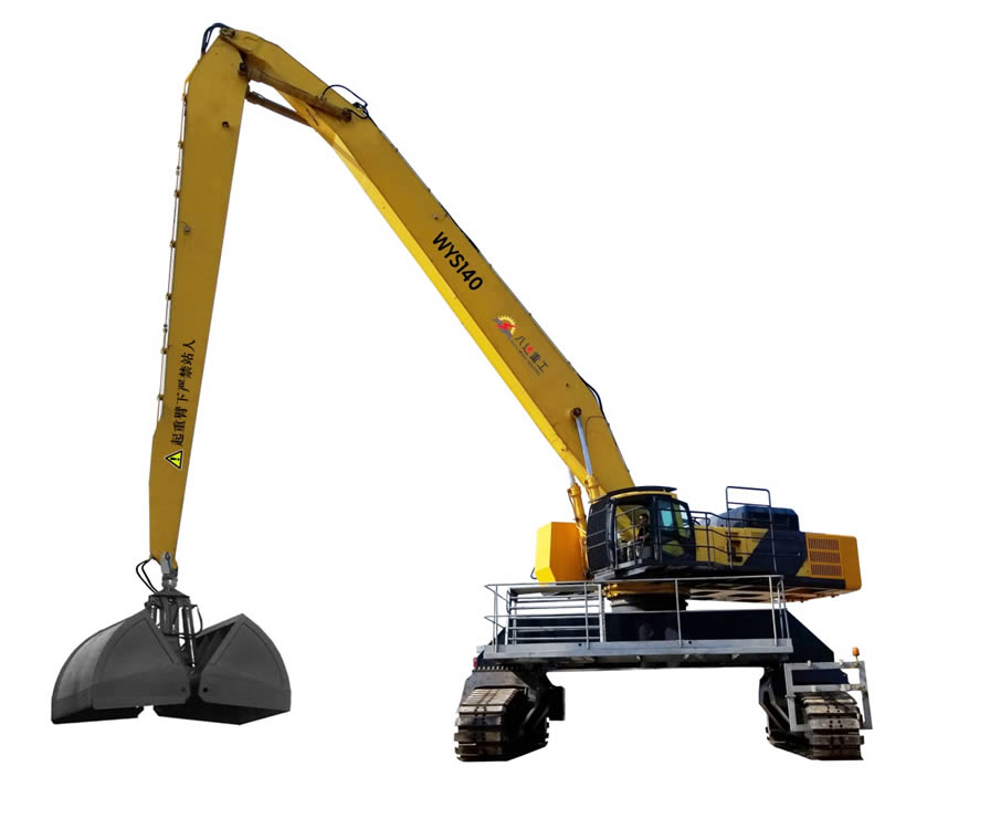 該設(shè)備選用電動作業(yè)安全節(jié)能,可比內(nèi)燃機(jī)驅(qū)動節(jié)省 60%的能耗;可快速更換不同用途的液壓抓斗,實現(xiàn)了一機(jī)多用功能??傮w具有以下特點: